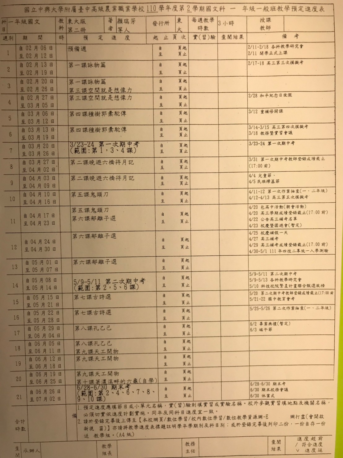 進度表